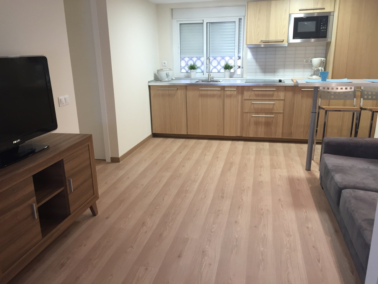 The flats have a living-dining room with double sofa bed, TV and air conditioning. Modern, fully equipped kitchens with dishwasher, microwave, washing machine, Dolce Gusto coffee machine and ceramic hob. The bedrooms, also with air conditioning, a spacious wardrobe to store all your belongings and en suite bathroom with shower.